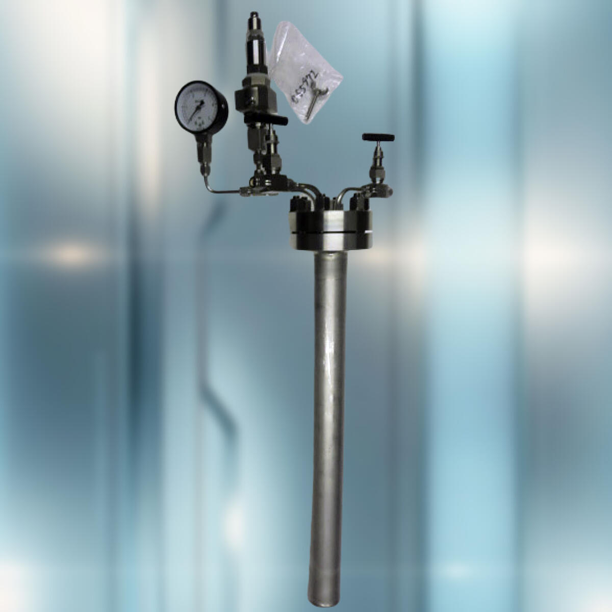 高温用SUS溶接容器 ○内容積:600cc○ 材質:SUS304○ 圧力:0.5MPa○ オプション1:圧力計、バルブ、安全弁、φ50程度でL=500もあるのが特徴です○ ポイント:600 cc/0.5 MPaの細長 SUS304 溶接容器。全周 TIG 溶接で高温リークレス運転